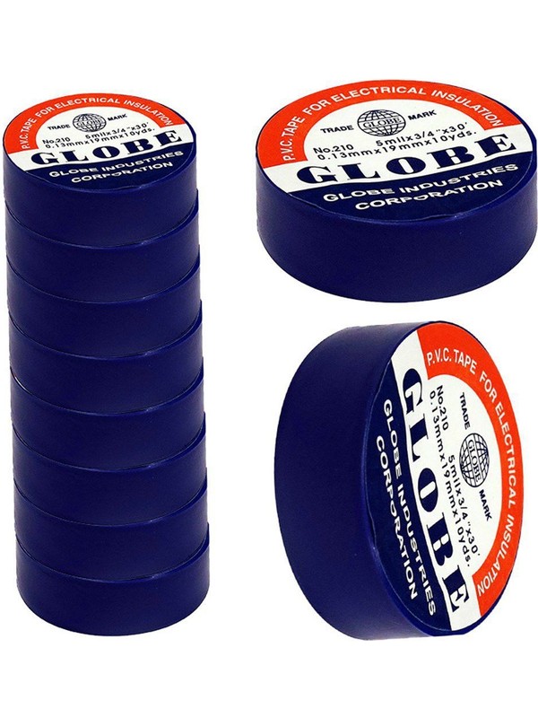 Globe Mavi Elektrik Bandı – 10'lu Paket | 19 mm x 10 Yds | PVC İzole Bant