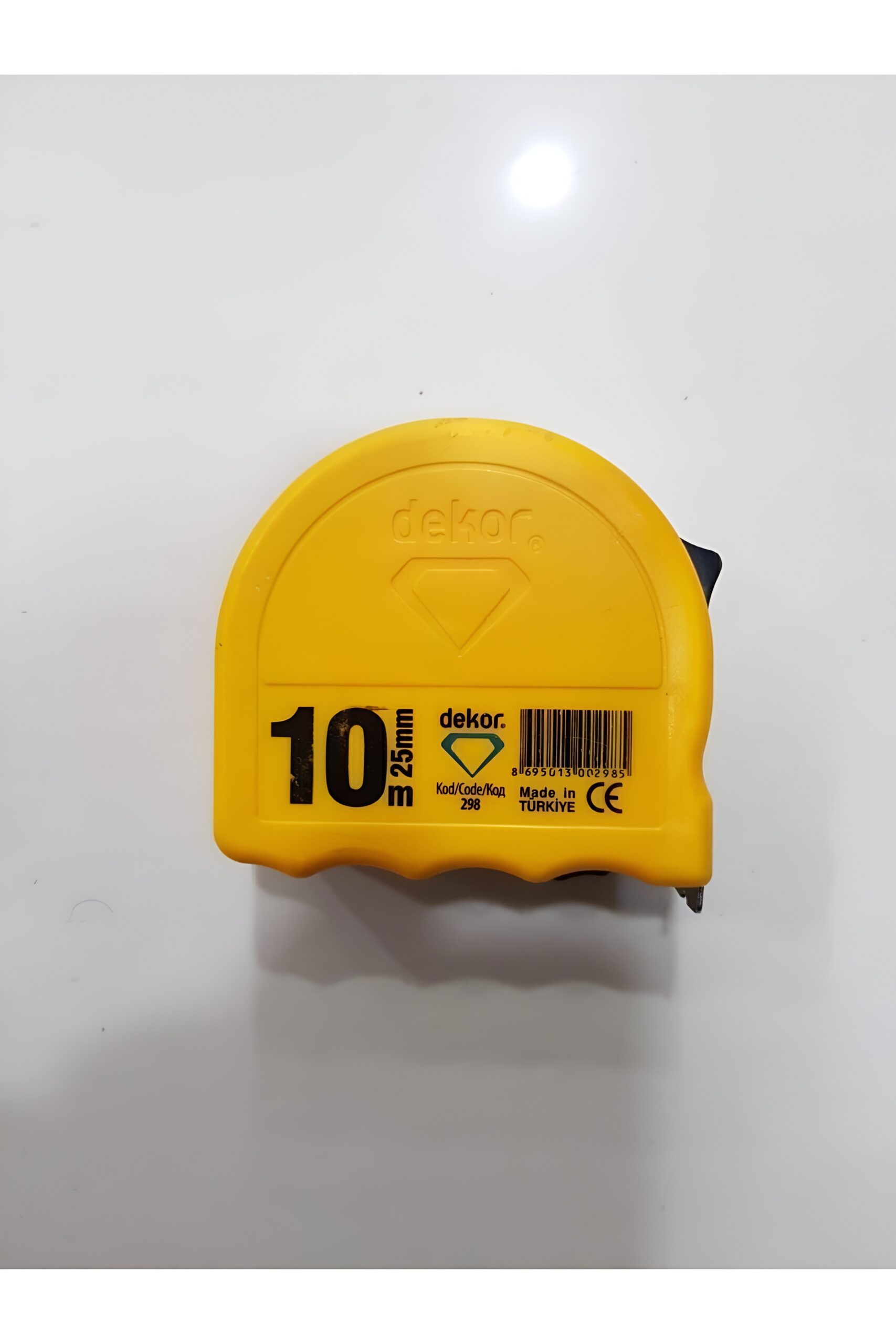 Dekor Şerit Metre 10×25 (Kod: 298), ergonomik tasarımı, darbelere dayanıklı kasası ve yüksek hassasiyetli ölçüm mekanizmasıyla profesyonel ve amatör kullanım için ideal bir ölçü aletidir.