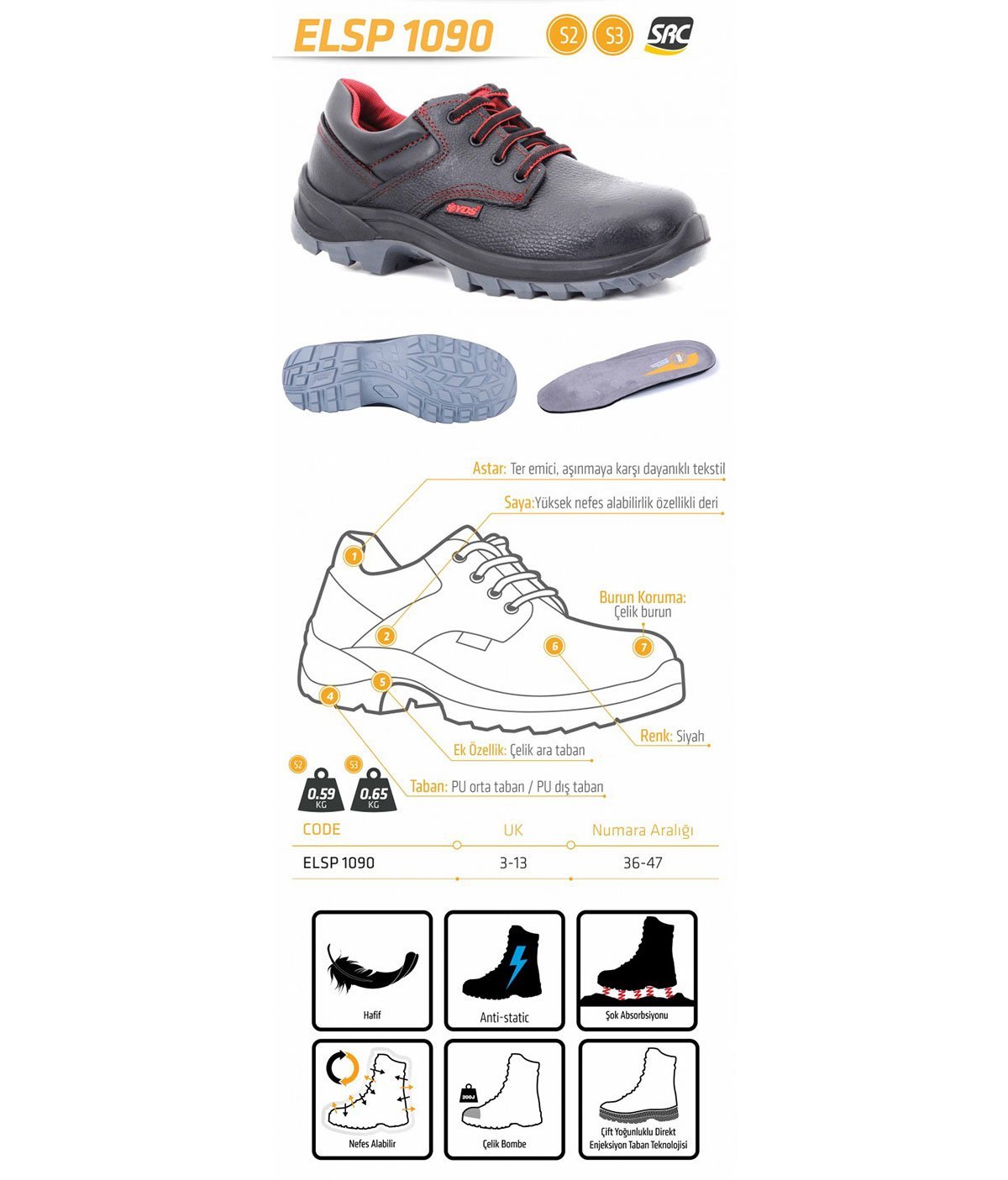 YDS ELSP 1090 S3 Çelik Burunlu ve Çelik Tabanlı Siyah İş Güvenlik Ayakkabısı