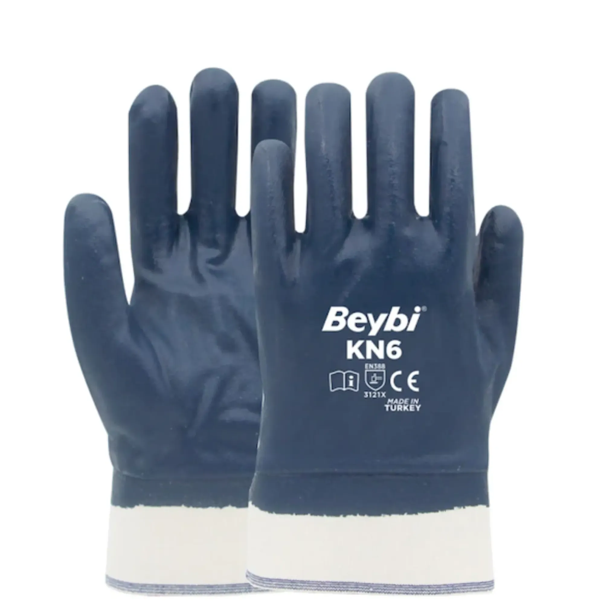 Beybi KN6 Petrolcü Nitril Eldiven No:10 | Tam Nitril Kaplı Yağ ve Petrole Dayanıklı Pamuk İş Eldiveni