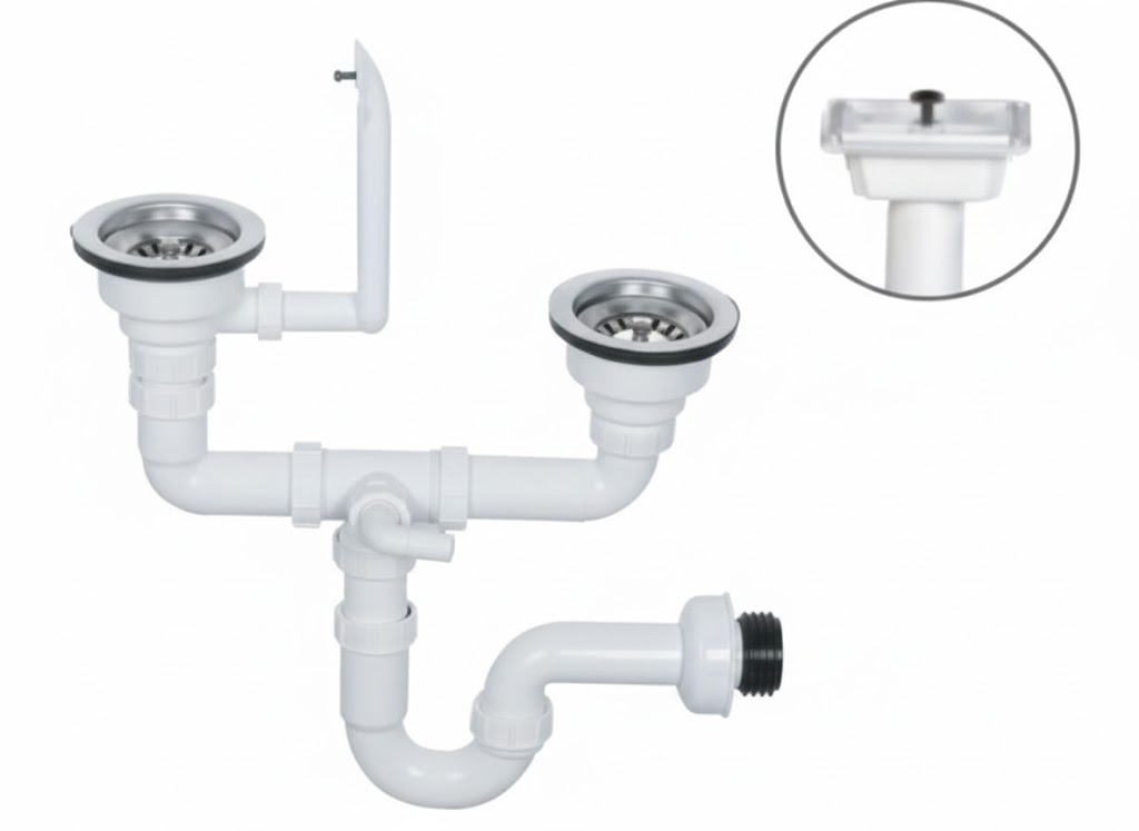 Çift cihaz bağlantısı ile mutfak lavabolarında çamaşır makinesi, bulaşık makinesi veya ek atık su hatlarının sorunsuz bağlanmasını mümkün kılar. Taşmalı yapısı sayesinde yoğun kullanımlarda bile güvenli bir su akışı sağlar. Korozyona ve aşınmaya dayanıklı malzemesi, uzun ömürlü ve bakım gerektirmeyen bir kullanım deneyimi sunar.